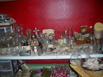 Hello to everyone! I hope that you all are having a great Holiday weekend! As usual Cathy and I were complaining to each other today about how messy our rooms that we work in are. You know, the place where we make our treasures and goodies for Canton, and throw all of our stuff in that we find at estate sales, garage sales, and even the trash! The room where you don't dare throw anything away, because you might be able to use it someday...lol! We call it our JUNK HOARDER ROOM. Well, once again we came up with an idea to have a contest for this too! Actually Cathy and I may have already beat everyone at this. Do not clean your room up or even straighten it a little bit...Send your pictures to us at fourthds@yahoo.com and lets get this contest started! Your prize will be a secret, and I promise not to just pull something out of our rooms to give you, but it will be something that we have created!P.S. I just had to also send a picture of Cathy's E6000. She has complained from day one about using this stuff. I for some reason, keep mine clean and it does not even get on my hands, on the other hand take a look at Cathy's....does anyone else have this problem? Can we say glue explosion! LOL!